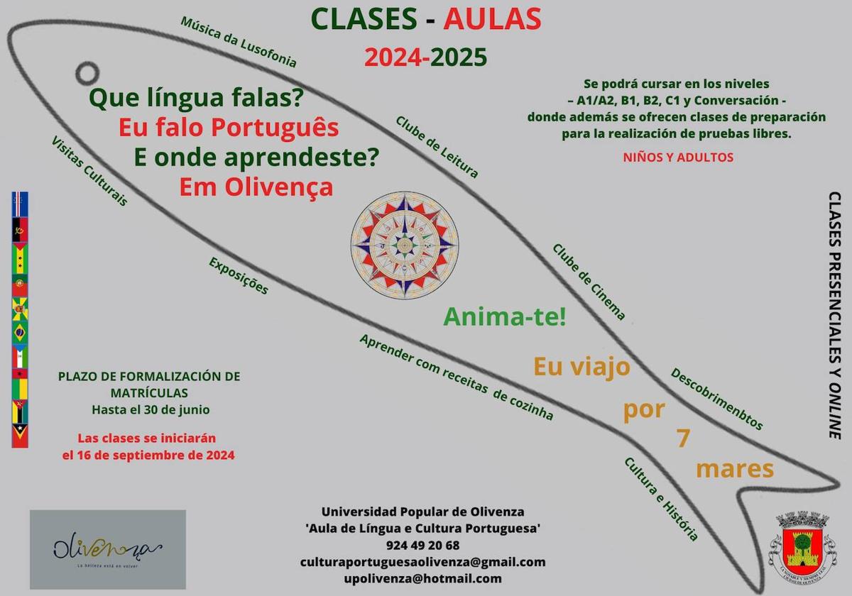 El Ayuntamiento de Olivenza, a través de la Universidad Popular, pone a disposición de la ciudadanía la posibilidad de adquirir formación y aprendizaje del idioma portugués y del dialecto del portugués oliventino.