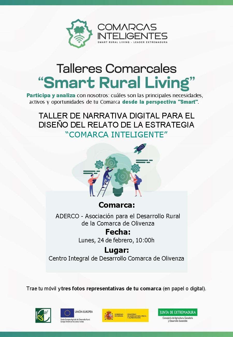 La Asociación para el desarrollo de la comarca de Olivenza, Aderco, organiza un taller comarcal 'Smart Rural Living' sobre narrativa digital, para el diseño del relato de la estrategia 'Comarca inteligente'.