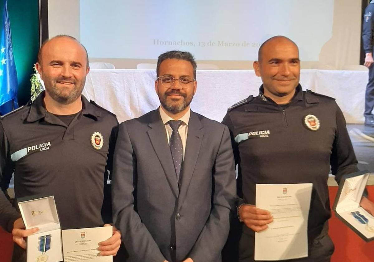 La entrega ha sido realizada en Hornachos donde se ha conmemorado el Día de la Policía Local de Extremadura, ambos agentes salvaron la vida de dos personas en septiembre