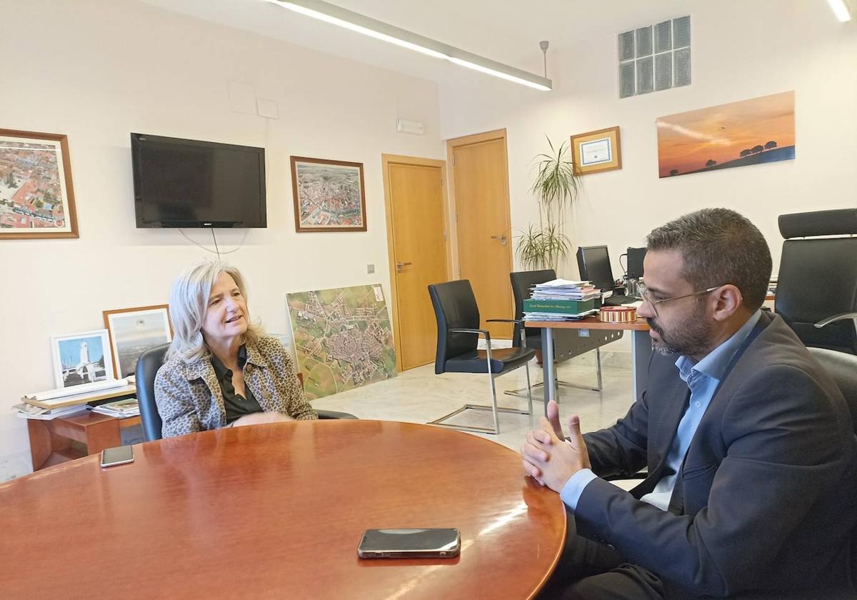 El alcalde Manuel J. González y la consejera de Cultura, Turismo, Jóvenes y Deporte de la Junta de Extremadura, Victoria Bazaga, han mantenido una reunión en el despacho de Alcaldía para tratar temas de interés para Olivenza.