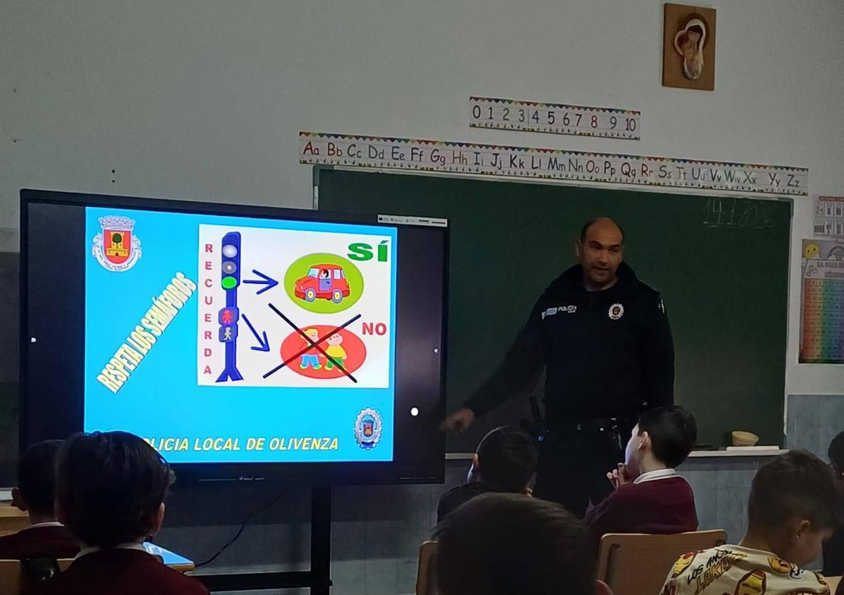 Las Escuelas Parroquiales del Sagrado Corazón de Olivenza recibieron la visita de agentes de la Policía Local para el desarrollo de una formación vial.