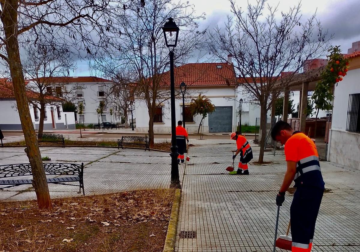 Entre las actividades realizadas se incluyen la retirada de maleza en las aceras, la recogida de residuos ligeros y tierra, el cambio de papeleras y otras tareas relacionadas con el barrido en la barriada de Los Amigos.