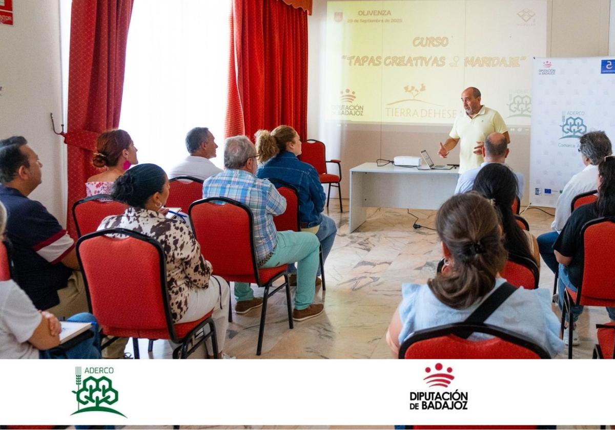 El pasado lunes 29 de septiembre tuvo lugar la inauguración del curso de 'Tapas y Maridaje' en el Hotel Herederos de Olivenza. Esta iniciativa refuerza la apuesta por la formación y el desarrollo del sector gastronómico en la Comarca.