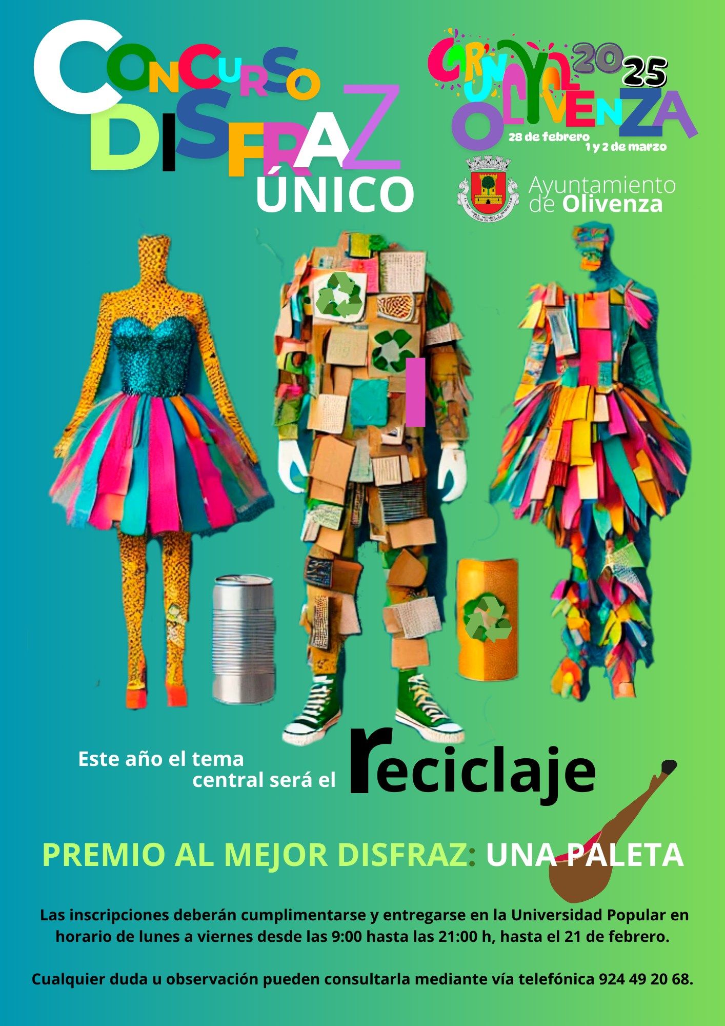 El Ayuntamiento premiará al mejor disfraz individual, realizado con material reciclado, con una paleta
