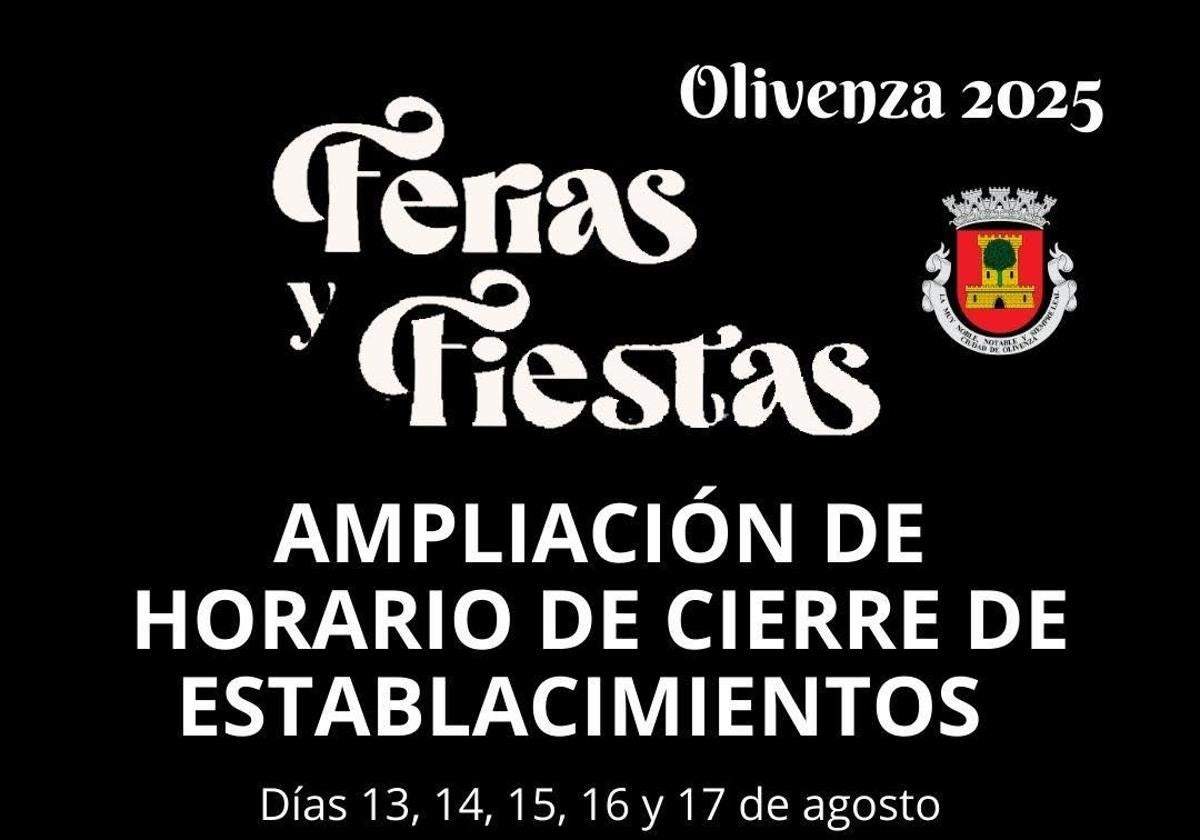Con motivo de la celebración de las ferias y fiestas de agosto, la Junta de Extremadura ha autorizado al Ayuntamiento de Olivenza la ampliación del horario de cierre de todos los establecimientos hosteleros de la ciudad.
