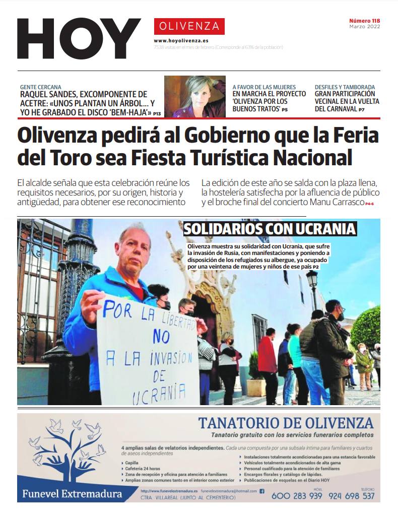 Toda la actualidad y noticias más importantes de los últimos dos meses en Olivenza y sus pedanías, compendiadas en el suplemento de marzo de 2022