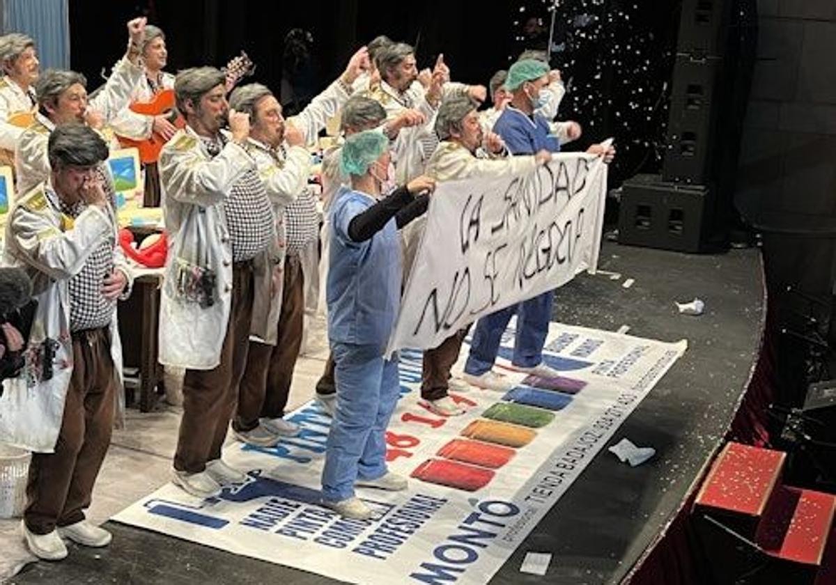 Los de Olivenza entran en la historia de las murgas de Badajoz y se traen el primer premio del concurso con sus reivindicativos y divertidos personajes del médico Juan Andrés