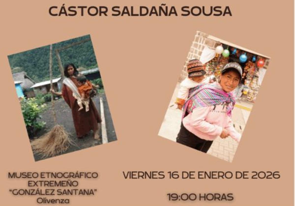 El próximo 16 de enero, a las 19.00 horas, en la planta baja de la Torre del Homenaje del Museo Etnográfico Extremeño 'González Santana', Cástor Saldaña Sousa impartirá la conferencia titulada 'De la lliklla andina al tsompironchi ashaninka: cómo las culturas peruanas moldean el desarrollo psicomotor en los primeros años de vida'.