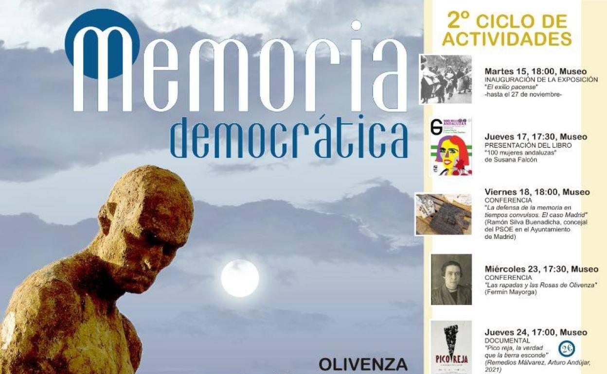 El II Ciclo de Actividades sobre Memoria Democrática se desarrollará del 15 al 27 de noviembre en las localidades de Olivenza y Mérida.