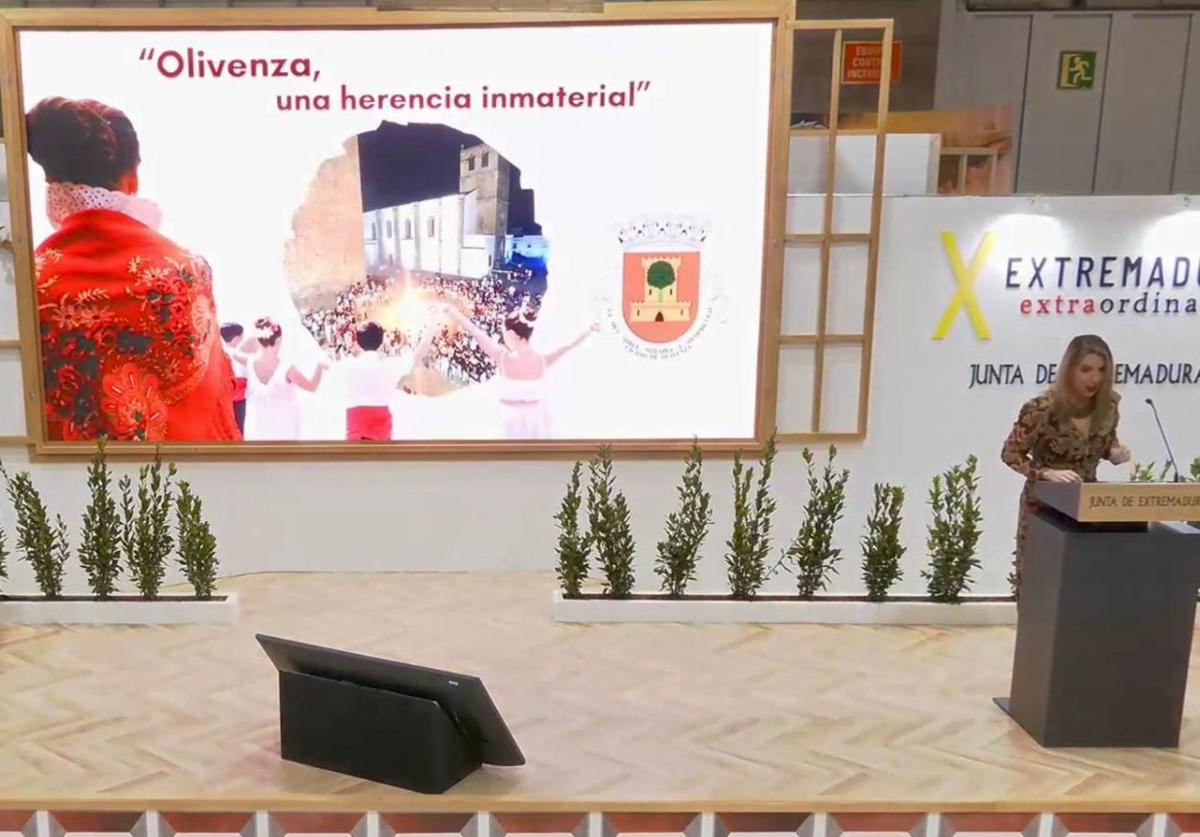 El Ayuntamiento de Olivenza ha presentado esta mañana en Fitur 2026 su oferta turística y cultural bajo el lema 'Olivenza, una herencia inmaterial', en un acto celebrado en el stand de Extremadura de la Institución Ferial de Madrid (IFEMA).