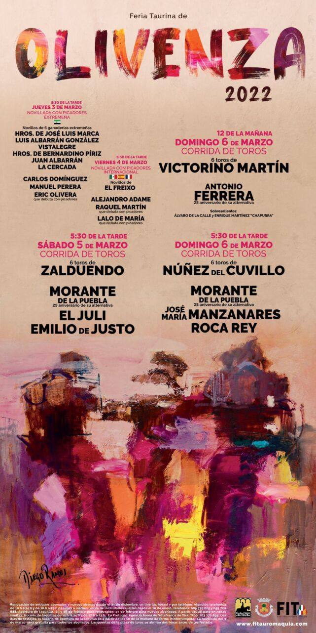 Las corridas serán amenizadas por la Sociedad Filarmónica de Olivenza. La novillada del 3 de marzo será gratuita para todos los abonados.
