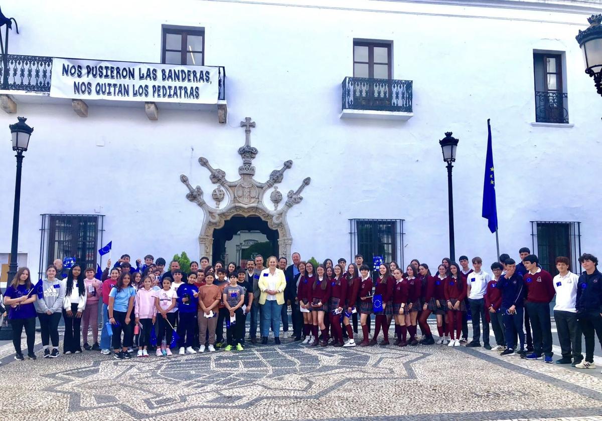 La jornada reunió al alumnado del CEIP Francisco Ortiz López, de las Escuelas Parroquiales del Sagrado Corazón y del IES Puente Ajuda delante del Consistorio.