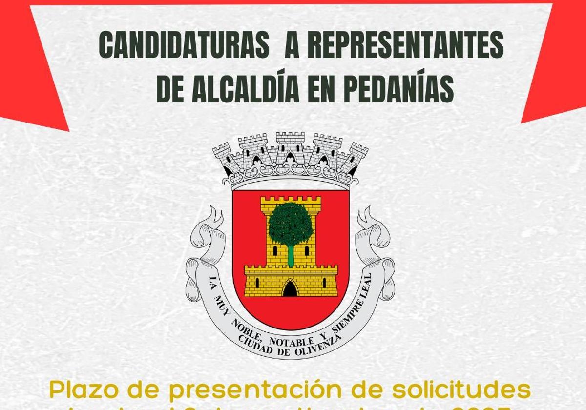 El Ayuntamiento de Olivenza, continuando con el proceso de participación ciudadana del municipio en el gobierno y administración local, va a iniciar el expediente para la elección de alcaldes pedáneos en San Benito de la Contienda, San Jorge de Alor, San Francisco de Olivenza, San Rafael de Olivenza, Santo Domingo y Villarreal, para la presente legislatura 2023/2027.