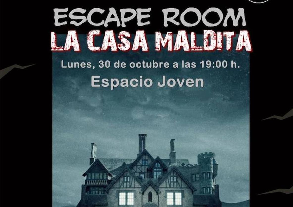 Con el título de 'La casa maldita', este apasionante juego consistente en la superación de diferentes pruebas para poder salir del espacio en el que se celebra se desarrollará el lunes 30 de octubre a las 19.00h.