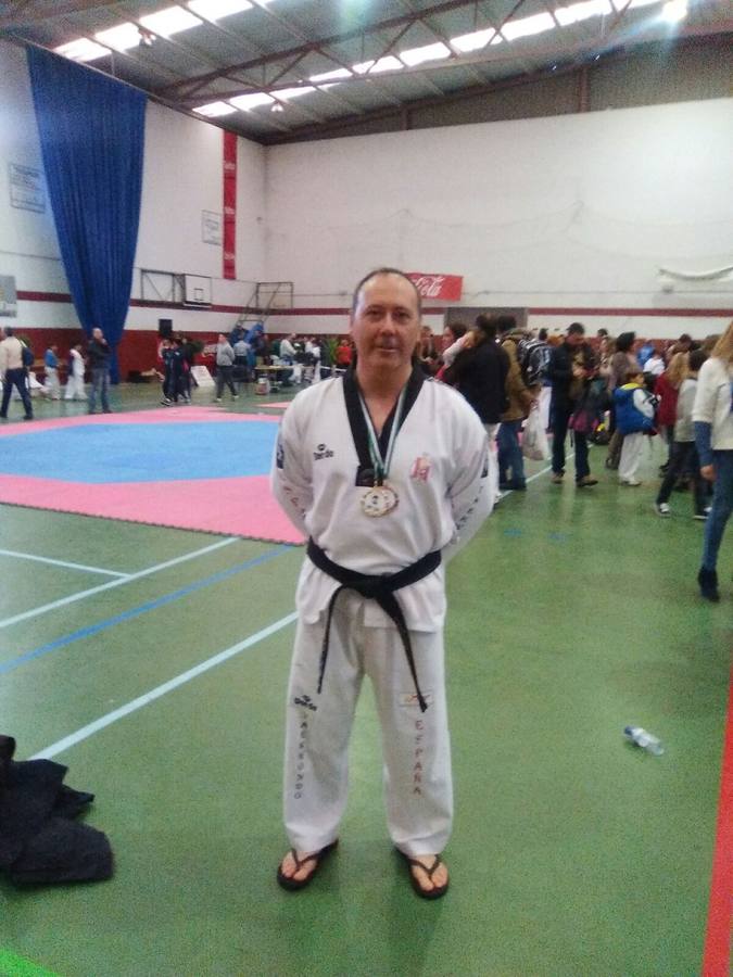El oro por equipos, conseguido el pasado mes de abril por Álvaro en categoría Máster 1 del V Campeonato de Extremadura de Taekwondo, en la modalidad Poomsae, se suma a los conseguidos en las dos pasadas ediciones y al bronce en individual que este oliventino asegura que podría haber sido otro metal de no ser por las malas condiciones del tatami en el que se compitió.
