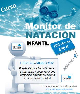 Durante los meses de febrero y marzo, las instalaciones de la Piscina Climatizada de Olivenza (PCO) serán escenario de un curso de monitor de natación infantil ofertado con el objetivo de formar a profesionales cualificados para la enseñanza de esta disciplina, algo esencial en cualquier etapa pero especialmente importante cuando se trata de menores, como se recuerda desde PCO.