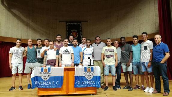 Equipo directivo y personal técnico, acompañados por el alcalde de Olivenza, Manuel J. González Andrade, presentaron el pasado mes de julio la Temporada 2017/2018 del Olivenza Fútbol Club, una temporada en la que ya comienza a trabajar el club con un ambicioso proyecto que busca situarlo en los primeros puestos de la tabla de Tercera División.
