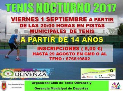 El calendario deportivo de la ciudad comenzará el mes de septiembre con el Torneo de Tenis Nocturno que se celebrará el próximo viernes, 1 de septiembre, a partir de las 20.00 horas en las pistas de la ciudad deportiva de Olivenza.