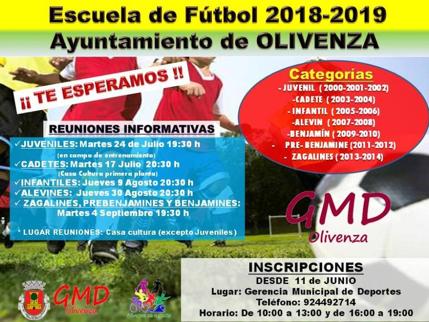 Desde el pasado 11 de junio están abiertas las inscripciones en la Escuela Municipal de Fútbol de la Gerencia Municipal de Deportes (GMD) para la próxima temporada 2018-2019.