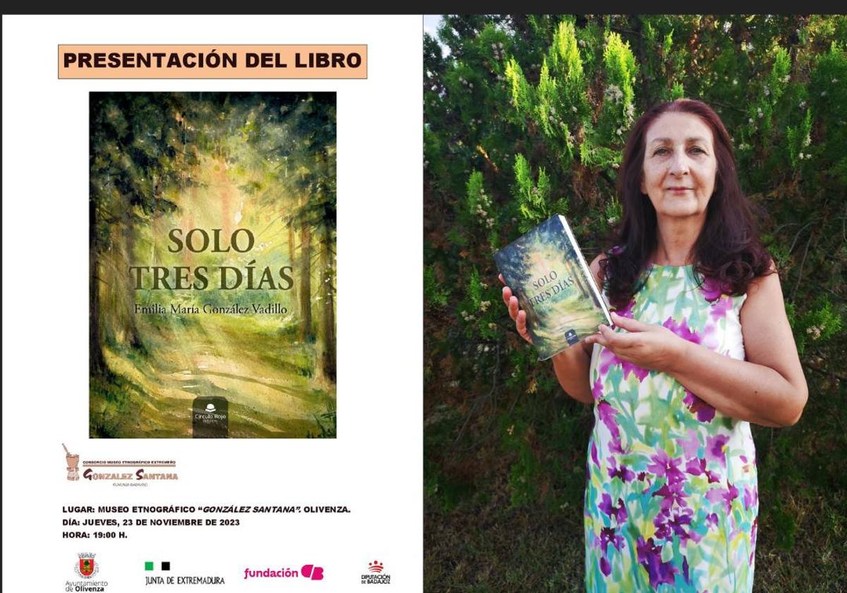 El próximo 23 de noviembre, a las 19,00 horas, en la planta baja de la Torre del Homenaje del Museo Etnográfico Extremeño 'González Santana', Emilia María González Vadillo presentará su novela Solo tres días, publicada por la Editorial Círculo Rojo. En ella cuenta dos historias llenas de emociones, las de Rodrigo y Elena, dos mundos, el real y el de la fantasía. Como escribe Círculo Rojo, «Su lectura nos aporta valores y mensajes muy positivos».