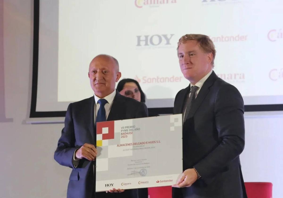 La empresa Oliventina 'Almacenes Delgado e Hijos' gana el accésit de los VII Premios Pyme del Año 2023 de la provincia de Badajoz, que concede la Cámara de Comercio de Badajoz y el Banco Santander, en colaboración con la Cámara de España y el diario HOY.