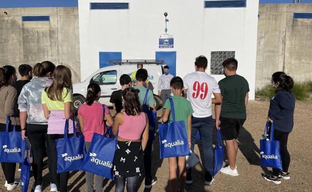 Escolares del centro de acogida 'Ana Bolaños' visitan el depósito de aguas de Olivenza de la mano de Aqualia
