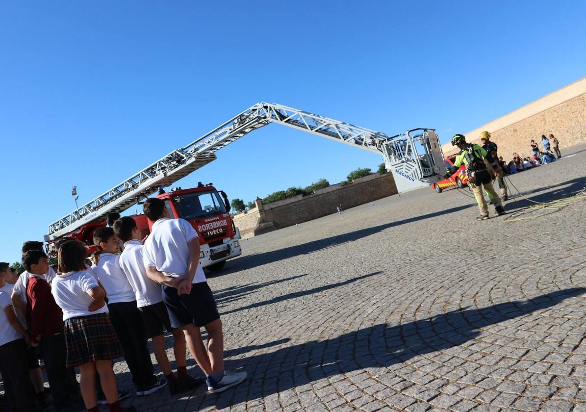 Los alumnos de los Centros Educativos Francisco Ortiz y las Escuelas Parroquiales del Sagrado Corazón han podido aprender diversas técnicas de salvamento y prevención de mano de los Bomberos de la Diputación de Badajoz