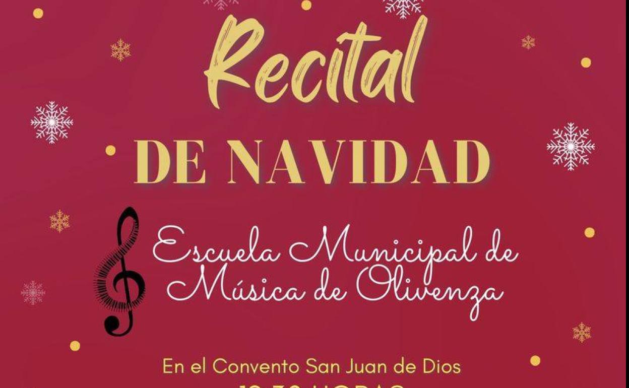 La programación navideña del Ayuntamiento de Olivenza prosigue con la actuación de la Escuela Municipal de Música de Olivenza. La escuela ofrecerá su recital de Navidad este jueves 22 de diciembre a las 19.30 horas de la tarde en la Capilla del Convento San Juan de Dios.
