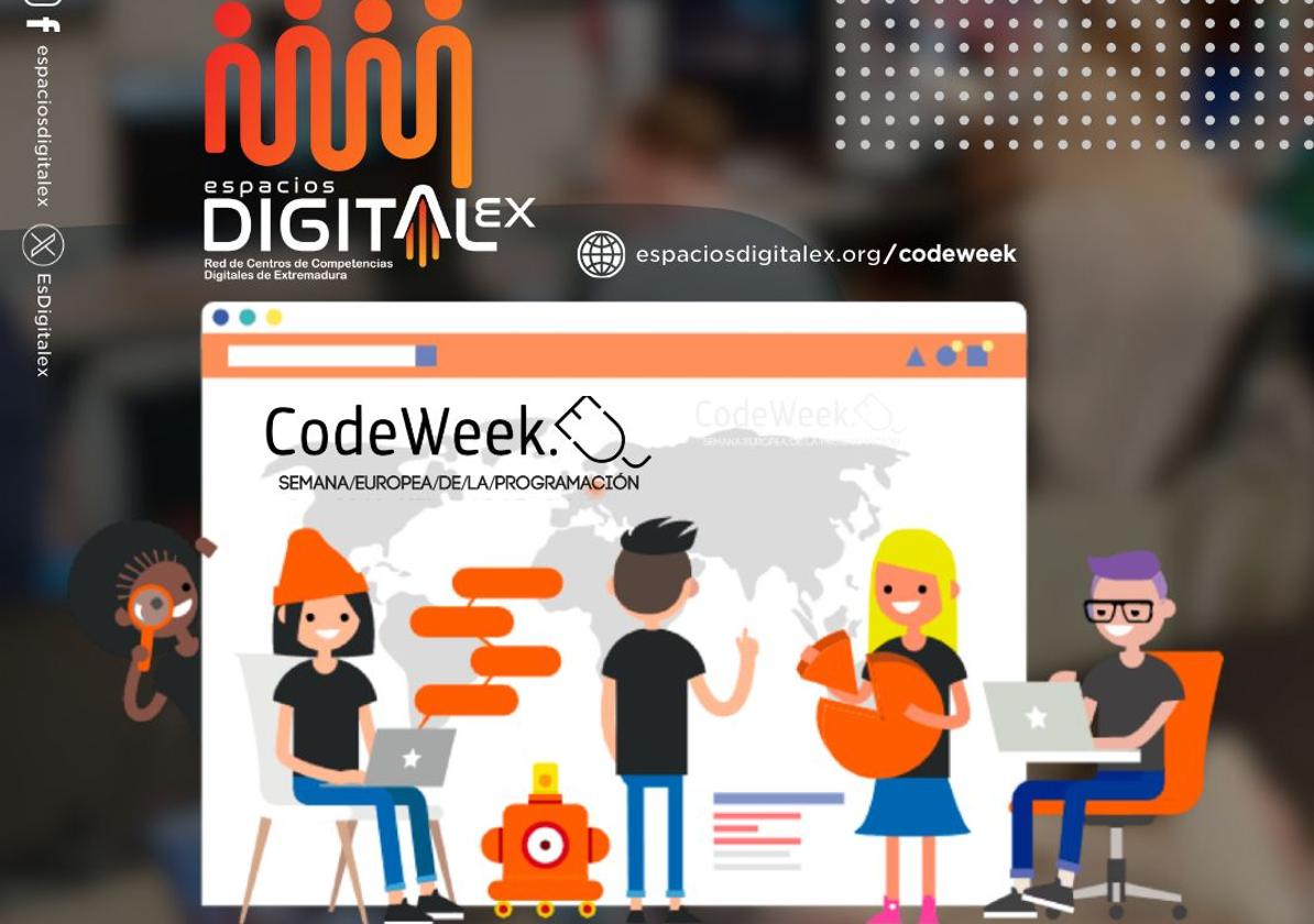 La Semana Europea de la Programación o Code Week es más que una celebración de la programación, es un movimiento que busca empoderar a la ciudadanía a lo largo del continente europeo para aprender, experimentar y relacionarse con las competencias digitales. Con esta iniciativa, Espacios Digitalex lanza una invitación a toda la población para participar en estos talleres y adentrarse en el mundo de oportunidades que ofrecen los nuevos entornos profesionales, cada vez más tecnológicos.