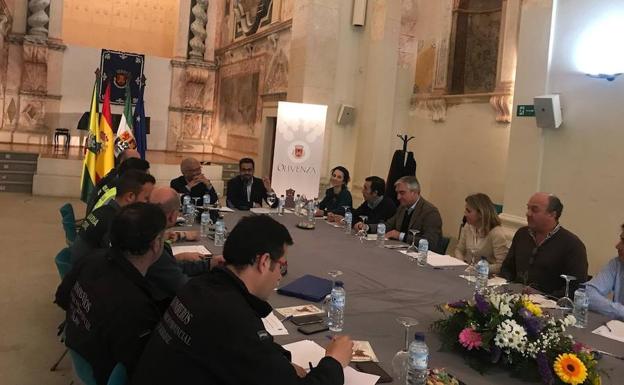 A finales del pasado mes de enero el alcalde de Olivenza, Manuel J. González Andrade, y el subinspector jefe de la Policía Local, Benito Márquez Gudiño, mantuvieron un nuevo encuentro con hosteleros de la ciudad para revisar y analizar los aspectos que a este sector conciernen para el buen desarrollo de uno de los eventos más importantes de la localidad, como la organización de la Feria Ibérica del Toro.