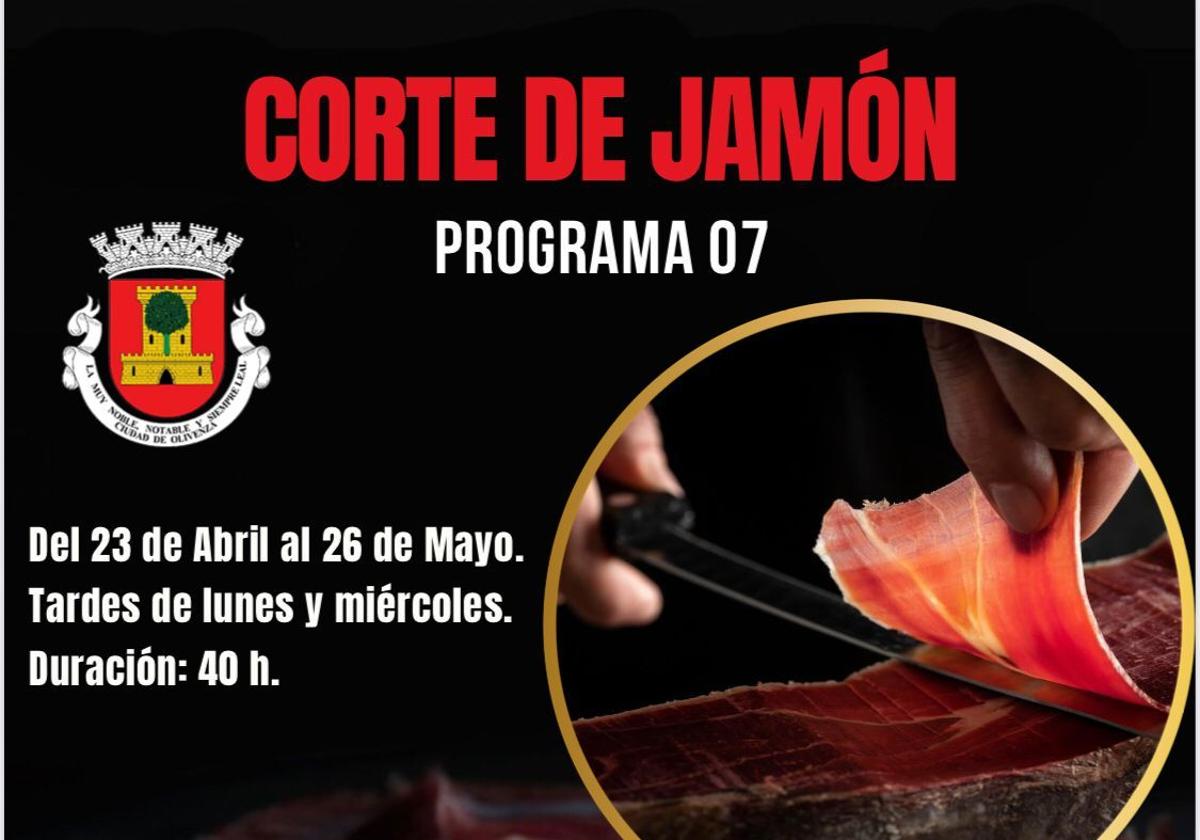 El Ayuntamiento de Olivenza con la colaboración del Ministerio de Derechos Sociales Consumo y Agenda 2030 y de la Federación Española de Universidades Populares organizan un curso de corte de jamón.
