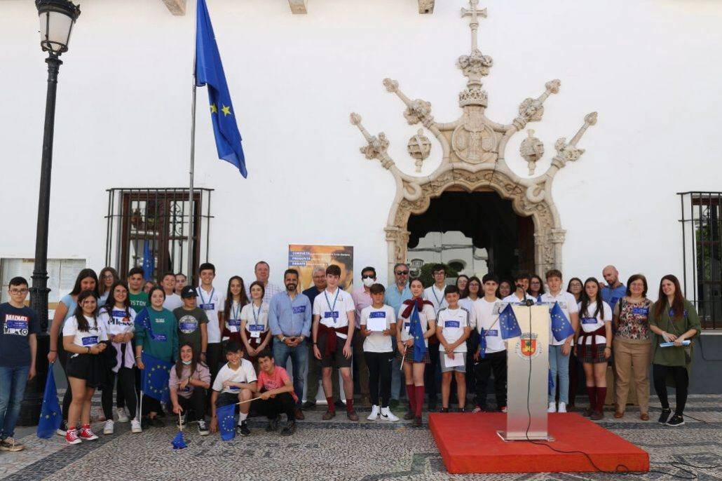 En el acto institucional que tuvo lugar por la mañana en la puerta del Ayuntamiento, estuvieron presentes el alcalde de Olivenza, Manuel José González Andrade; el presidente en funciones del Grupo de Acción Local ADERCO, Óscar Díaz Hernández, Manuel J. Garrancho González, coordinador del CEIPREX Olivenza, varios miembros de la corporación municipal, la directora del I.E.S. 'Puente Ajuda', Carolina Mira Anzola, la directora de las Escuelas Parroquiales del Sagrado Corazón, Marian Benito Rodríguez, y Joaquín Olivera, profesor y Embajador Senior del mismo, junto al alumnado y profesorado de ambos centros educativos.