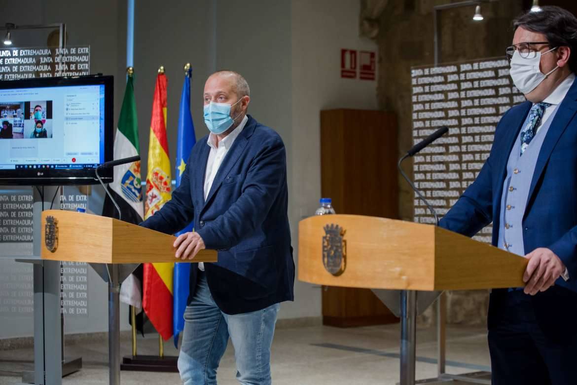 El vicepresidente segundo y consejero de Sanidad y Servicios Sociales de la Junta de Extremadura, José María Vergeles Blanca, y el de Economía, Ciencia y Agenda Digital, Rafael España Santamaría, comparecieron el pasado 5 de enero para anunciar medidas restrictivas para la actividad hostelera, comercial y educativa, así como actividades de ocio y tiempo libre, a la par que anunciaron una dotación presupuestaria para los negocios afectados, con ayudas con más de 40 millones de euros.