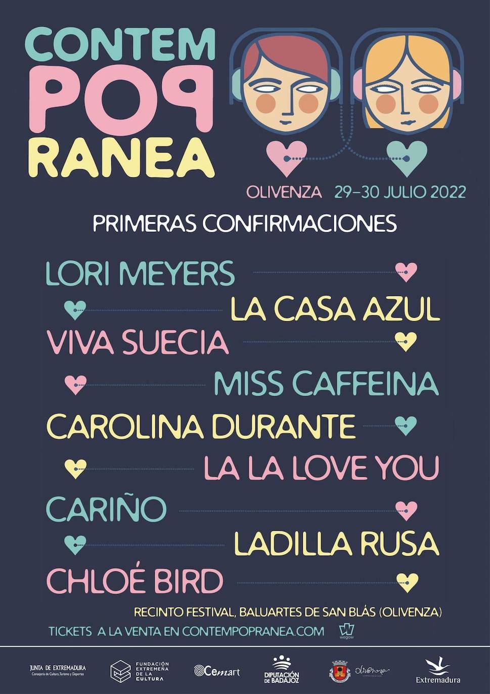 Miss Caffeina, Carolina Durante, La La Love You, Cariño, Ladilla Rusa y Cholé Bird son el resto de nombres que ya forman parte de un cartel que irá añadiendo artistas próximamente para este evento musical de referencia que se celebrará en Olivenza los días 28 al 30 de julio