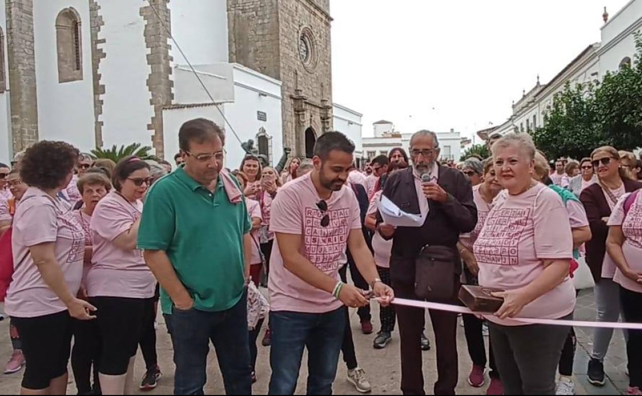Los asistentes llevaron puestas las camisetas conmemorativas de la jornada, conformando así una marea rosa que recorrió la Olivenza monumental de su casco antiguo.