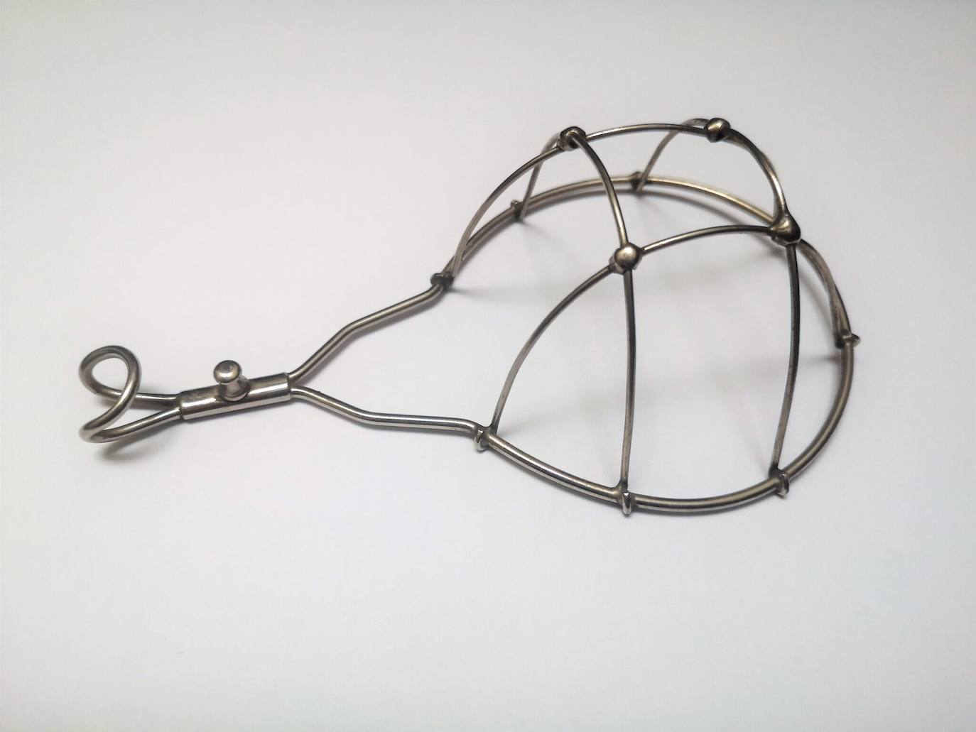 La mostrada en el Museo, también llamada mascarilla o inhalador Esmarch por el cirujano alemán Friedrich Von Esmarch (1823-1908,) se introdujo en 1877. Sobre un paño, que no conserva y que se extendía sobre el alambre proporcionando una gran superficie de evaporación, se dejaba caer el cloroformo o éter. Se podía añadir más cantidad a medida que se evaporaba. El marco evita que el paño empapado toque la cara del paciente, evitando irritaciones en la piel. Solía presentarse en un pequeño estuche de cuero, junto a un frasco de cloroformo, gasa y una tijera. Fue diseñado para su uso en el campo de batalla. También fue popular para uso civil en todo el mundo hasta la década de 1950. Las posteriores fueron modificaciones de la Esmarch.