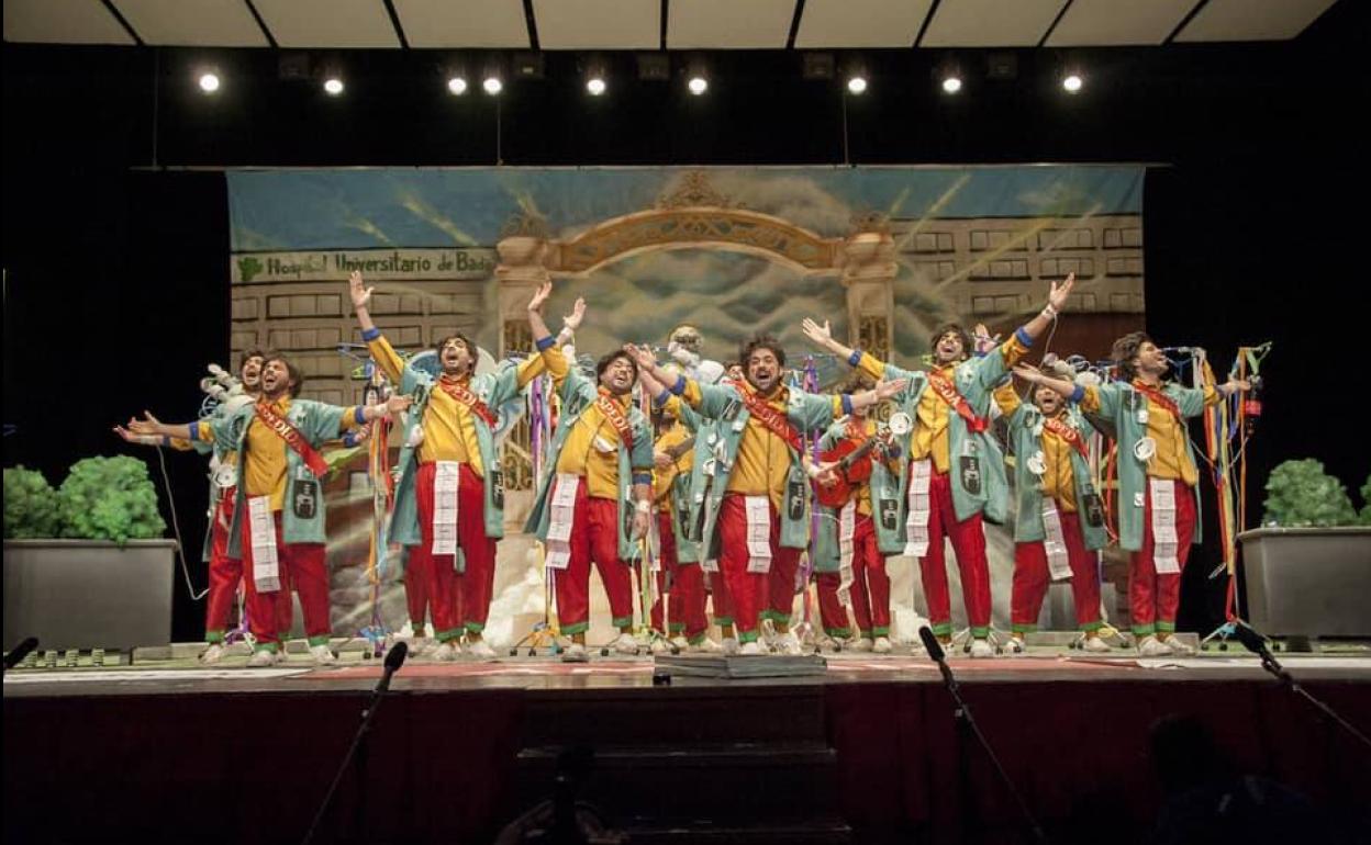 La murga oliventina vuelve a participar en el concurso pacense con un original tipo de enfermo moribundo con el que arrancaron carcajadas en el Teatro López de Ayala