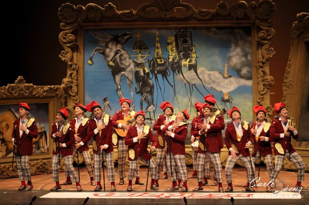 Tras un año sabático, la murga oliventina reaparece convertida en Salvador Dalí y consiguen colarse en la final del Concurso de Murgas de Badajoz