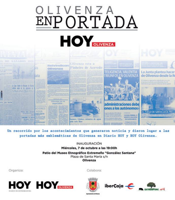 La exposición abrirá este miércoles, 7 de octubre, a las 19.00 horas, en el Museo Etnográfico 'González Santana', y en ella se mostrarán portadas y noticias de HOY sobre Olivenza y sus pedanías, para celebrar la edición número 100 del hiperlocal HOY Olivenza