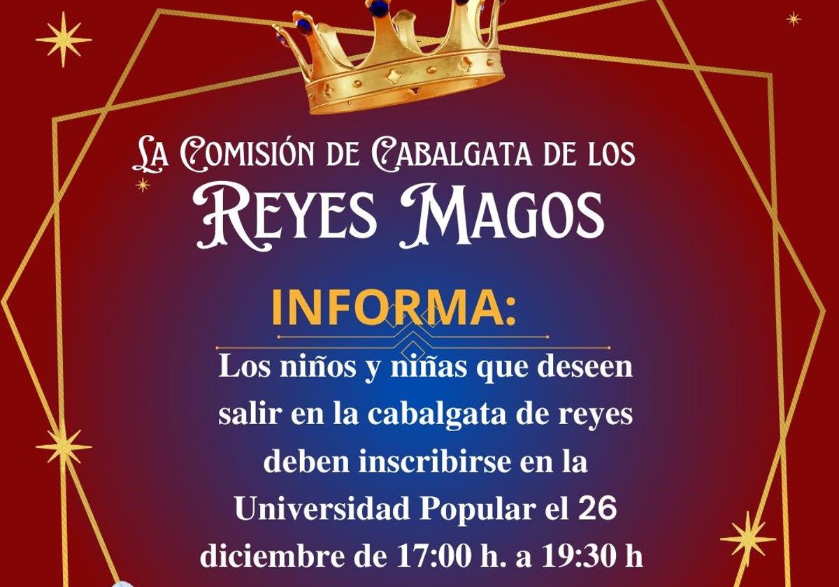 Los niños interesados en participar en le Cabalgata de los Reyes Magos de Oriente deben inscribirse en la UPO, Universidad Popular de Olivenza, este jueves 26 de diciembre.