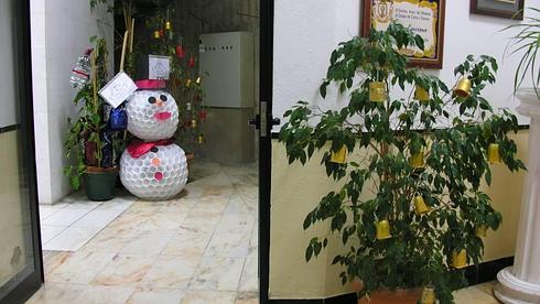 Vasos de yogur convertidos en originales bolas decorativas, tapones de botella que forman sonrientes muñecos de nieve, flores realizadas a partir de plásticos o un gran muñeco de nieve elaborado con vasos de plástico son algunos de los elementos decorativos que se pueden encontrar en las calles oliventinas.