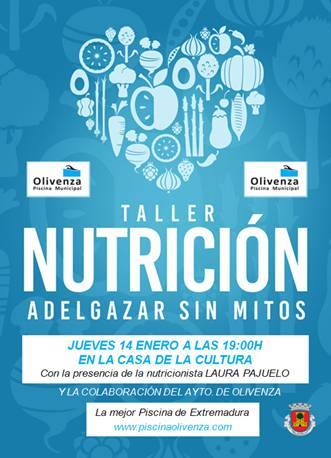 La Piscina Climatizada de Olivenza ha organizado para la tarde de hoy un taller de nutrición en el que bajo el título de Adelgazar sin mitos, la nutricionista Laura Pajuelo abordará en la Casa de la Cultura como comemos y el peligro de las dietas milagro.