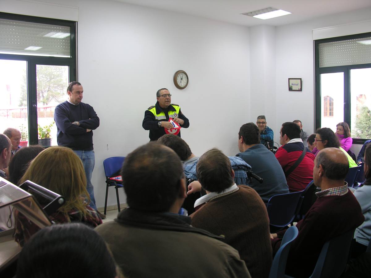 Prevención y seguridad han sido los dos objetivos de la charla sobre Educación Vial impartida hoy por el agente de la Policía Local de Olivenza, ... Manuel Ferrera, en las instalaciones de la Asociación de Personas con Discapacidad Física y Psíquica de la Comarca de Olivenza, Aprosuba-14.