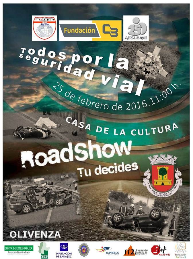 El poder de la imagen es una de las herramientas esenciales del programa de Educación Vial Road Show que el próximo jueves 25 de febrero llega a la Casa de la Cultura de Olivenza a las 11.00 horas para sensibilizar, especialmente a los jóvenes, sobre los riesgos al volante, en la búsqueda por reducir la alta siniestralidad que se da en esta franja de población.