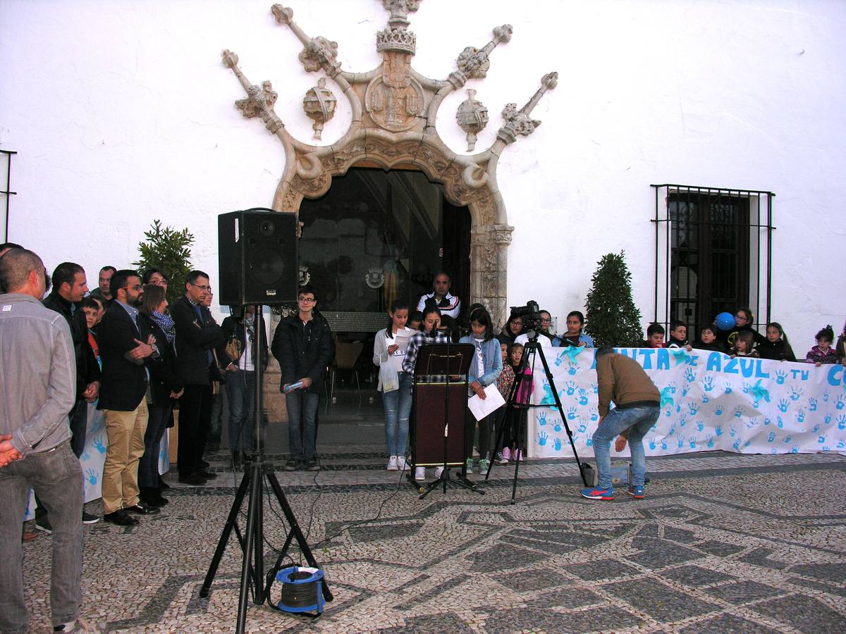 Con el color azul como telón de fondo en los globos que decoraban el consistorio, las luces que alumbraron la puerta manuelina del Ayuntamiento al oscurecer y las pancartas elaboradas por alumnado del Colegio Francisco Ortiz, la localidad se unió por la inclusión en todos los ámbitos de las personas con Trastornos del Espectro Autista (TEA) y en apoyo a la solicitud del citado centro de un aula especializada de TEA.