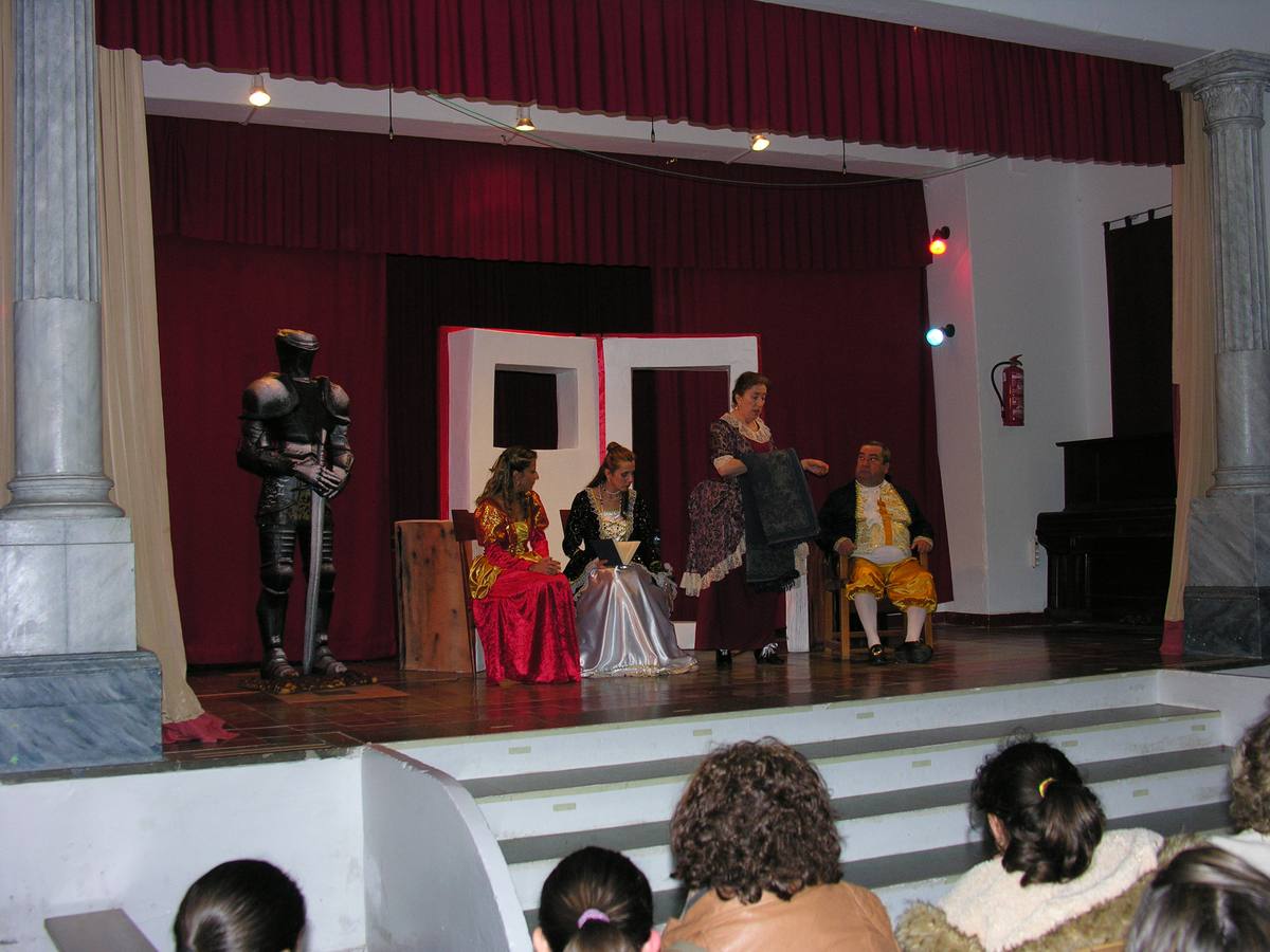 El Salón de Actos de las Escuelas Parroquiales del Sagrado Corazón acogió en la tarde de ayer la representación de los entremeses cervantinos Guarda cuidadosa y El viejo celoso, llevados a escena por la compañía oliventina Oliexcénicas.