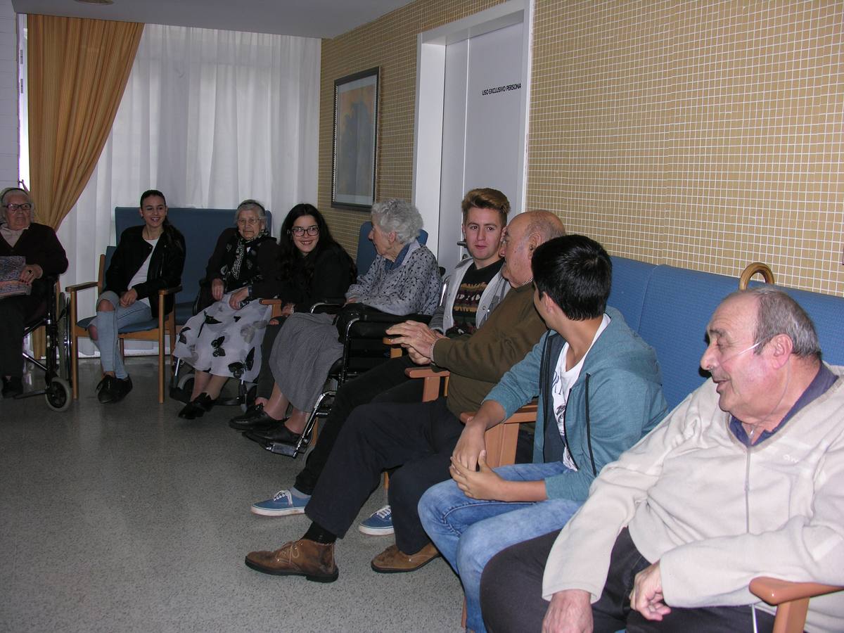Temas como la comida, el ocio, los juegos e incluso el servicio militar han estado presentes en un encuentro en el que los hombres y mujeres residentes han agradecido al alumnado y la profesora que les acompañaba, así como al resto de grupos que esta semana han visitado el centro, la alegría que supone para ellos contar con su presencia.