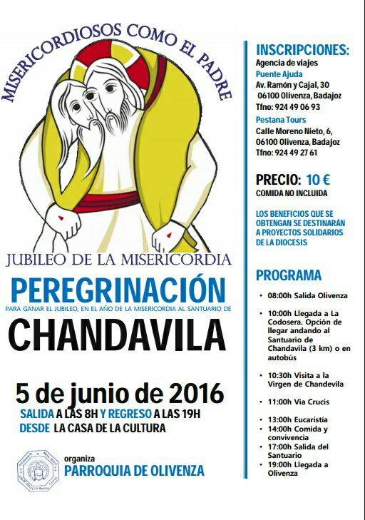 Con motivo de la celebración del Año Jubilar de la Misericordia, la Comunidad Parroquial de Olivenza, en colaboración con la Junta de Hermandades, organiza una peregrinación al Santuario de la Nuestra Señora de los Dolores de Chandavila, en La Codosera, que se realizará el próximo 5 de junio.