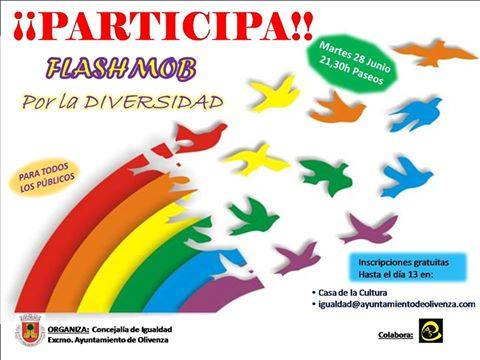 Entre las actividades previstas para la conmemoración del Día del Orgullo LGTBI (lesbianas, gais, transexuales, bisexuales e intersexuales), la Concejalía de Igualdad del Ayuntamiento de Olivenza ha programado para el próximo 28 de junio un flashmob o coreografía en grupo, en este caso destinada a reinvindicar la diversidad sexual.