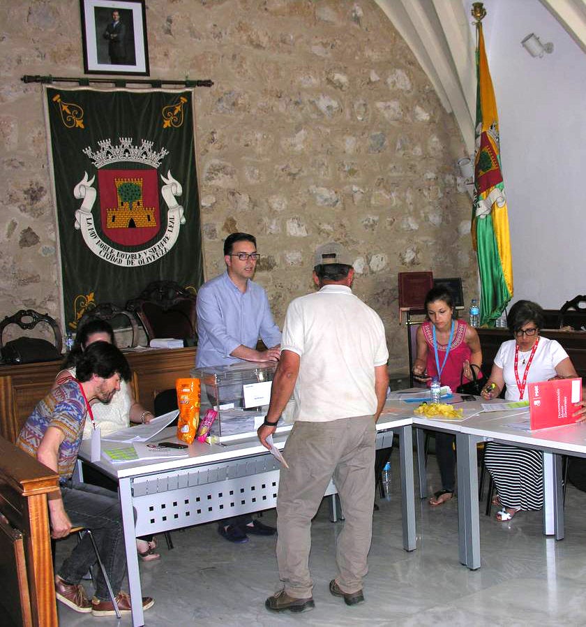 Según datos del Ministerio del Interior, a las 14.30 horas de la mañana de hoy el nivel de participación alcanzaba el 39,67%, frente al 36,15% de votantes que a la misma hora había acudido a las urnas situadas en las 16 mesas electorales oliventinas.